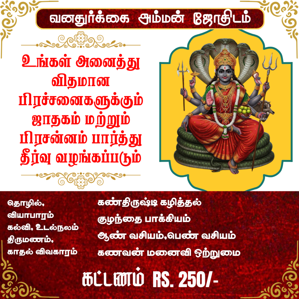 ஆன்மீக நண்பர்கள் அனைவரையும் வனதுர்க்கை அம்மன் ஜோதிட நிலையம் சார்பாக உங்களை அன்போடு வரவேற்கிறோம்